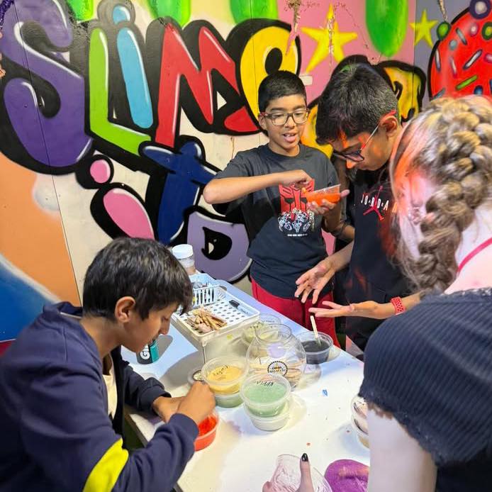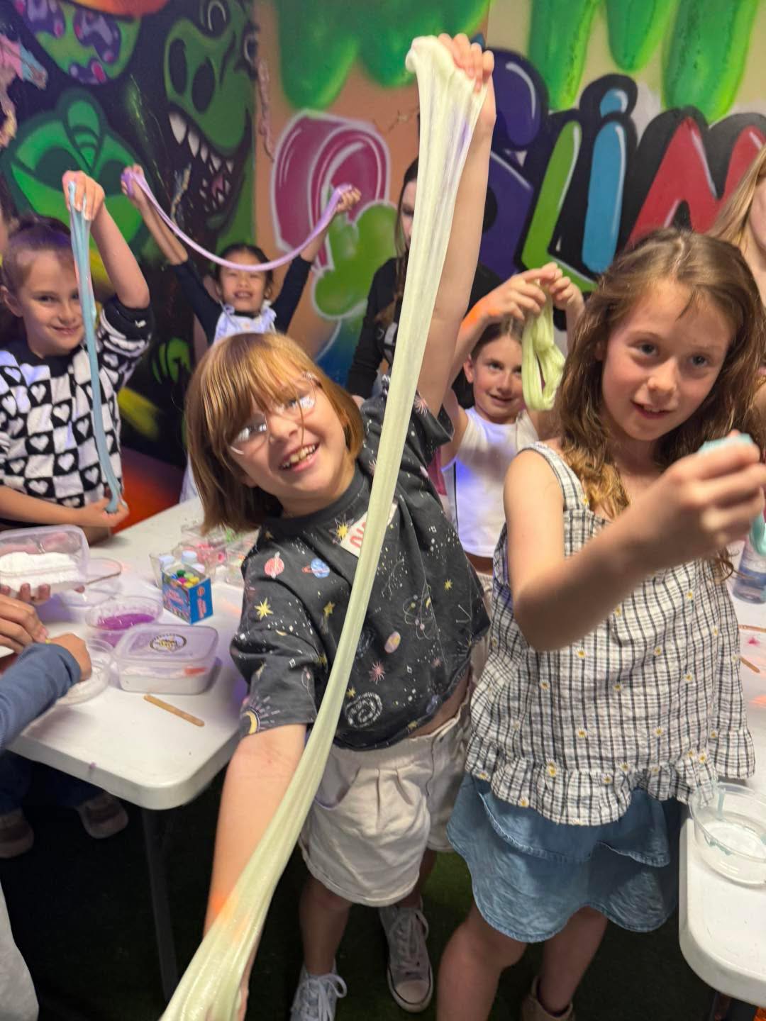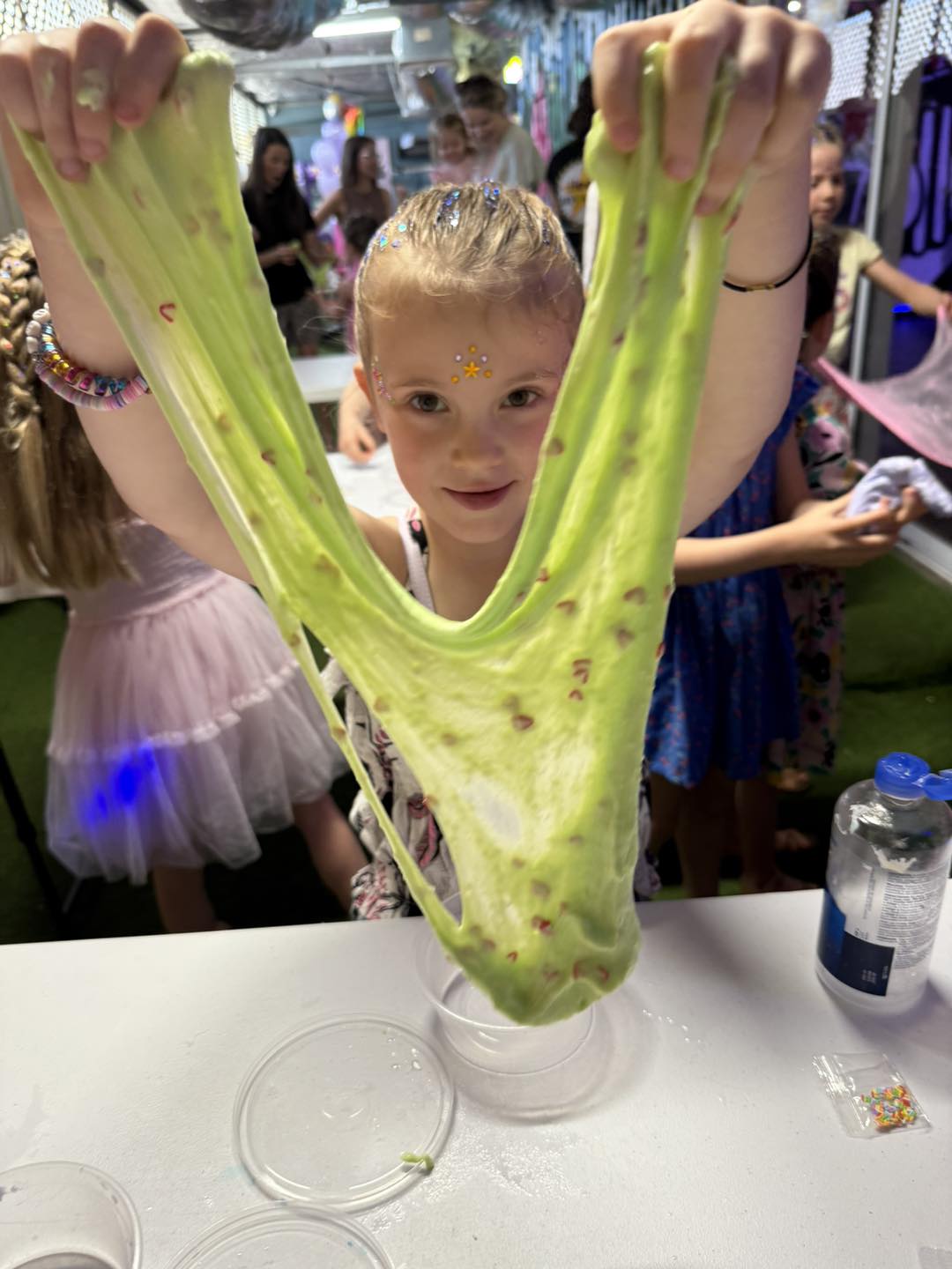 Includes food, drinks, slime-making supplies, full hosting, and all the fun — with no stress and no mess for parents!