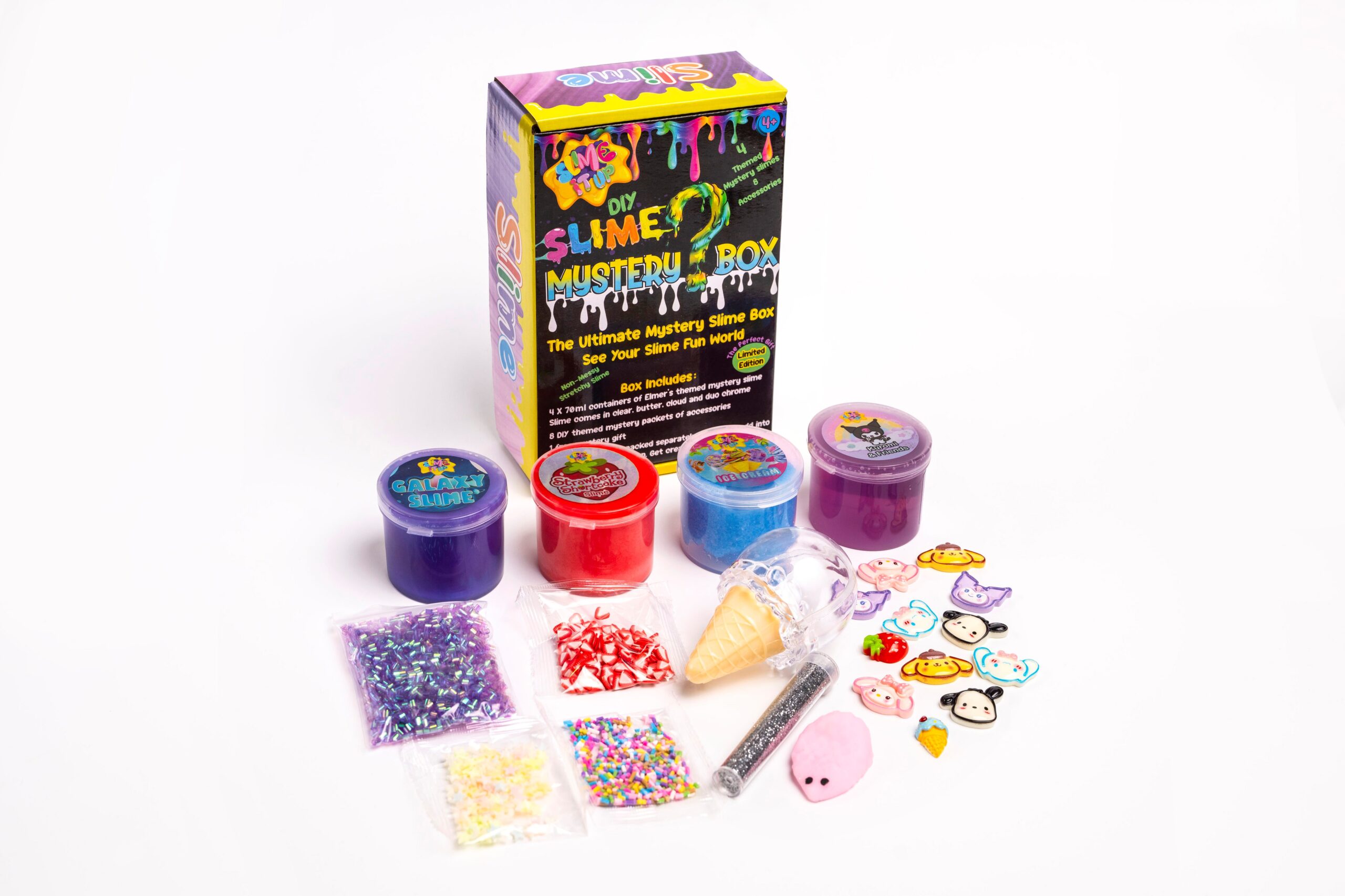 Party Ready To Go In Your Very Own Home! Or Makes A Fun Gift! Get ready for the ultimate adventure with the Slime Mystery Box! This magical box is packed with four unique slimes: crystal-clear duo-chrome ✨, fluffy ☁️, cloud ❄️, and classic clear 🌈; all with a rainbow of delightful scents. Each slime is designed to stretch, swirl, and pop for endless creativity! Perfect for aspiring slime artists, this kit has everything you need to build your very own slime world, scented with mystery aromas for a surprise in every texture.